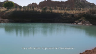 Known for its rich seams of tin and columbite-tantalite, the Jos plateau in central Nigeria was mined on an industrial scale by the British until they left after the country gained independence. This activity, which has been vital for generations of diggers in the region, now continues under make-shift, rudimentary and dangerous conditions. The artist and filmmaker Karimah Ashadu met and filmed those who use picks, shovels and sieves to mine, scrape, wash and sort the matter, literally ripped from the earth to recover minute quantities of the precious ore, and in the process attacking the landscape in order to survive. Their voice-overs with their fatalistic stories accompany the camera as it uses highly accurate wide-angle shots or close-ups to capture the unrelenting rhythm of bodies to the sound of the motorised pumps, and reveals the environmental devastation that this anarchic extraction causes: an ochre-red desert, pitted with ravines and abandoned mines. Plateau forcefully challenges the destruction of an ecosystem, as the poisoned legacy of predatory colonisation.
