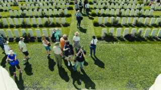 « Dans les champs de Flandres, les coquelicots fleurissent entre les croix... » Ce poème du lieutenant colonel canadien John Mc Rae évoque l'une des pires boucheries de la Grande Guerre, qui s'est déroulée autour d'Ypres. Rasée pendant le conflit, la cité a été reconstruite grâce aux réparations allemandes, et est devenue un centre mondial de commémoration. Les coquelicots imagés du soldat sont aujourd'hui fabriqués en série : les « poppy » se transforment en gerbes, boucles d'oreilles ou tout autre objet mémoriel acheté comme souvenir par les nombreux visiteurs affluant dans la région. Native d'Ypres, Annabel Verbeke observe avec une perplexité amusée ce carnaval commémoratif qui assure à la ville rente financière et emplois durables – il faut une véritable armée pour entretenir la centaine de cimetières militaires. Grâce à la rigueur de son cadre, la durée juste des plans qui le composent, We Will Remember Them offre une méditation parfois mordante sur la manière dont les hommes transforment la mémoire de « l'Histoire avec sa grande hache » en parc d'attraction touristique.