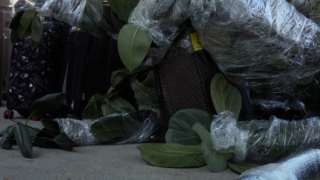 Que prendre, que laisser ; quelle importance le matériel a-t-il lorsque l’on cherche à sauver sa vie ? Des paquets arrivés d’Ukraine, emplis de tout(s) et de rien(s), attendent patiemment sous un pont d’être retrouvés, tandis qu’une voix convoque les souvenirs d’objets futiles et favoris, semblant envoyer à Kiev une lettre d’adieu, déchirante.